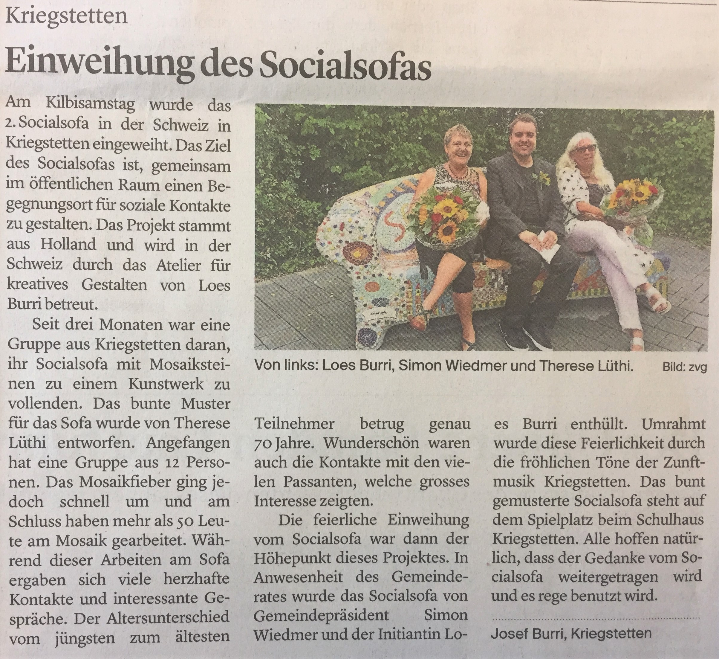 " Einweihung des Socialsofas in Kriegstetten", Solothurner Zeitung August 2019