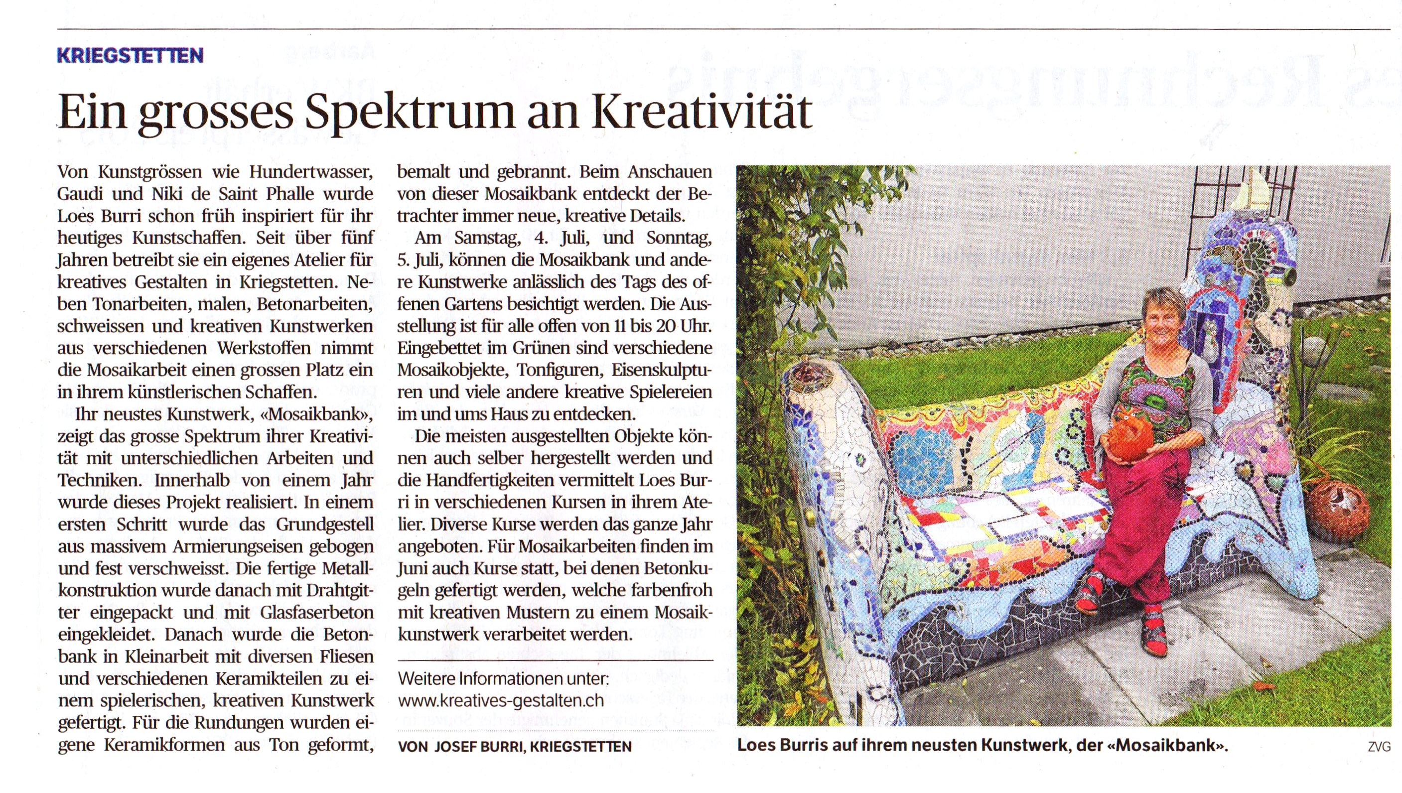 "Kreative Leidenschaft" Solothurner Zeitung Juli 2013