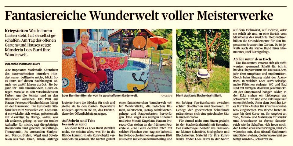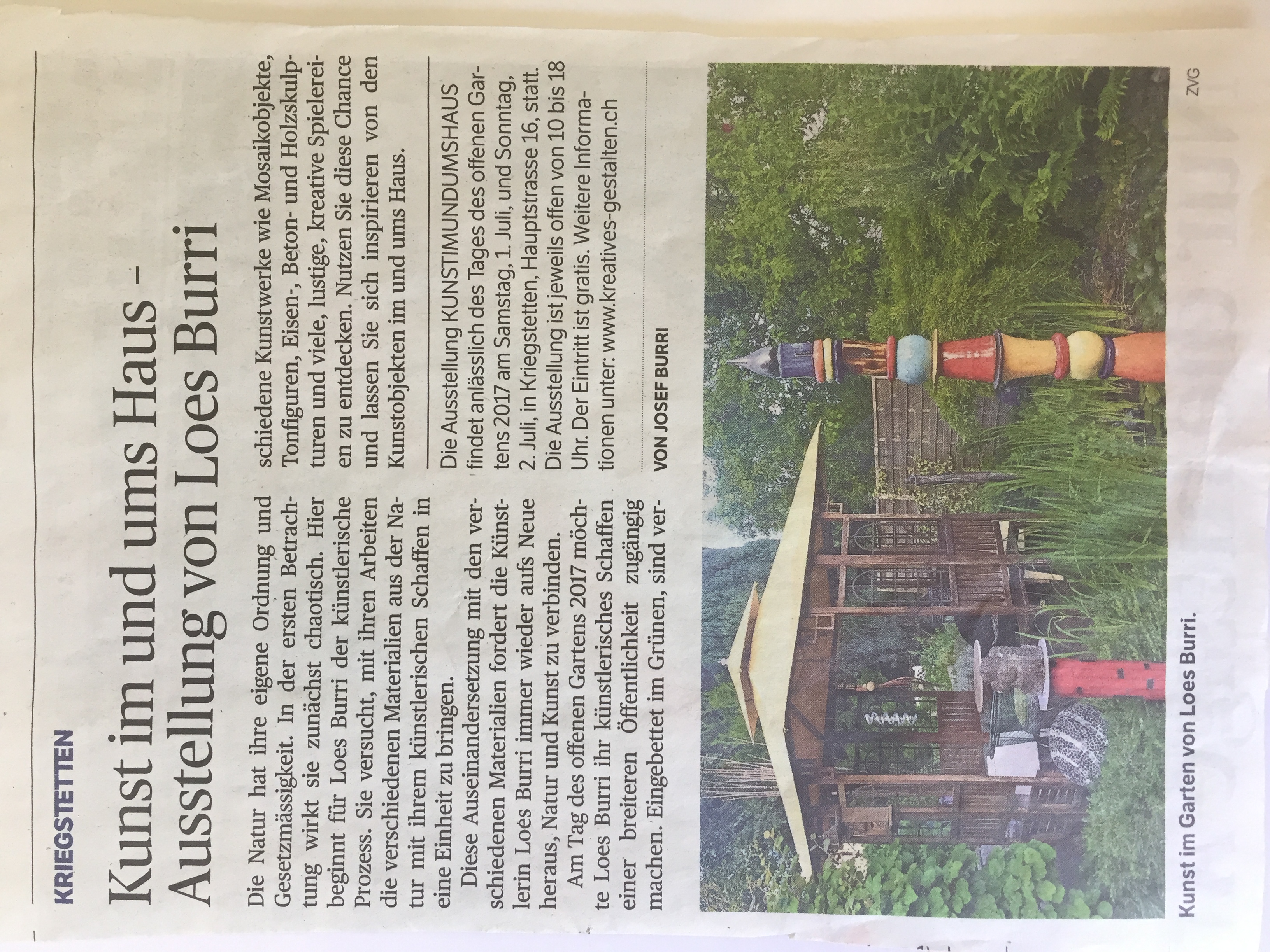 " Kunst im und ums Haus - Ausstellung von Loes Burri, Solothurner Zeitung Juni 2017