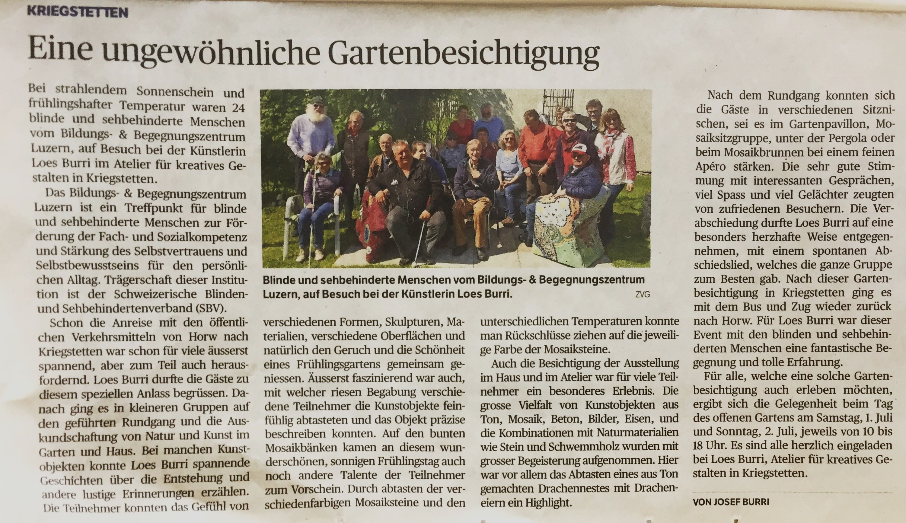 "Ein ungewöhnliche Gartenbesichtigung" Solothurner Zeitung April 2017