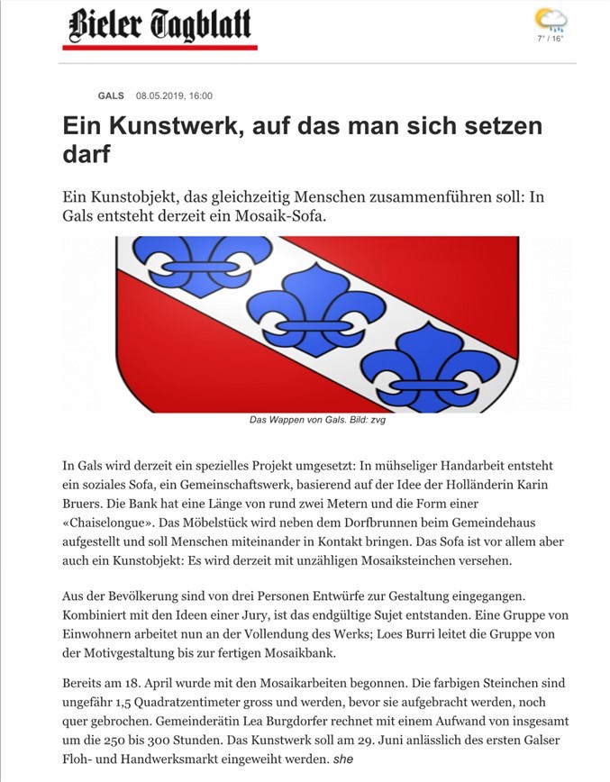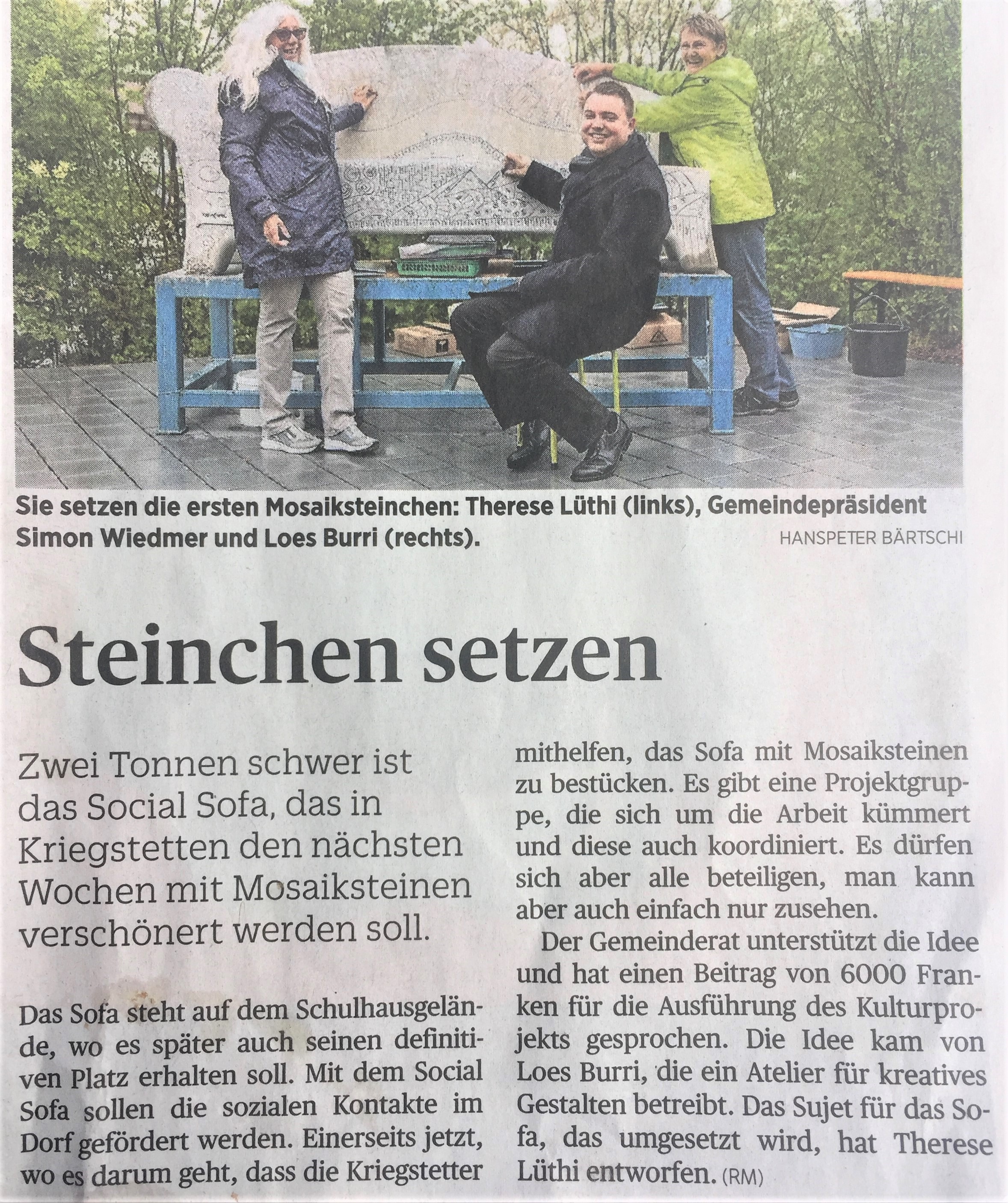 "Steinchen setzen" Start zum Projekt Socialsofa in Kriegstetten, Solothurner Zeitung Mai 2019