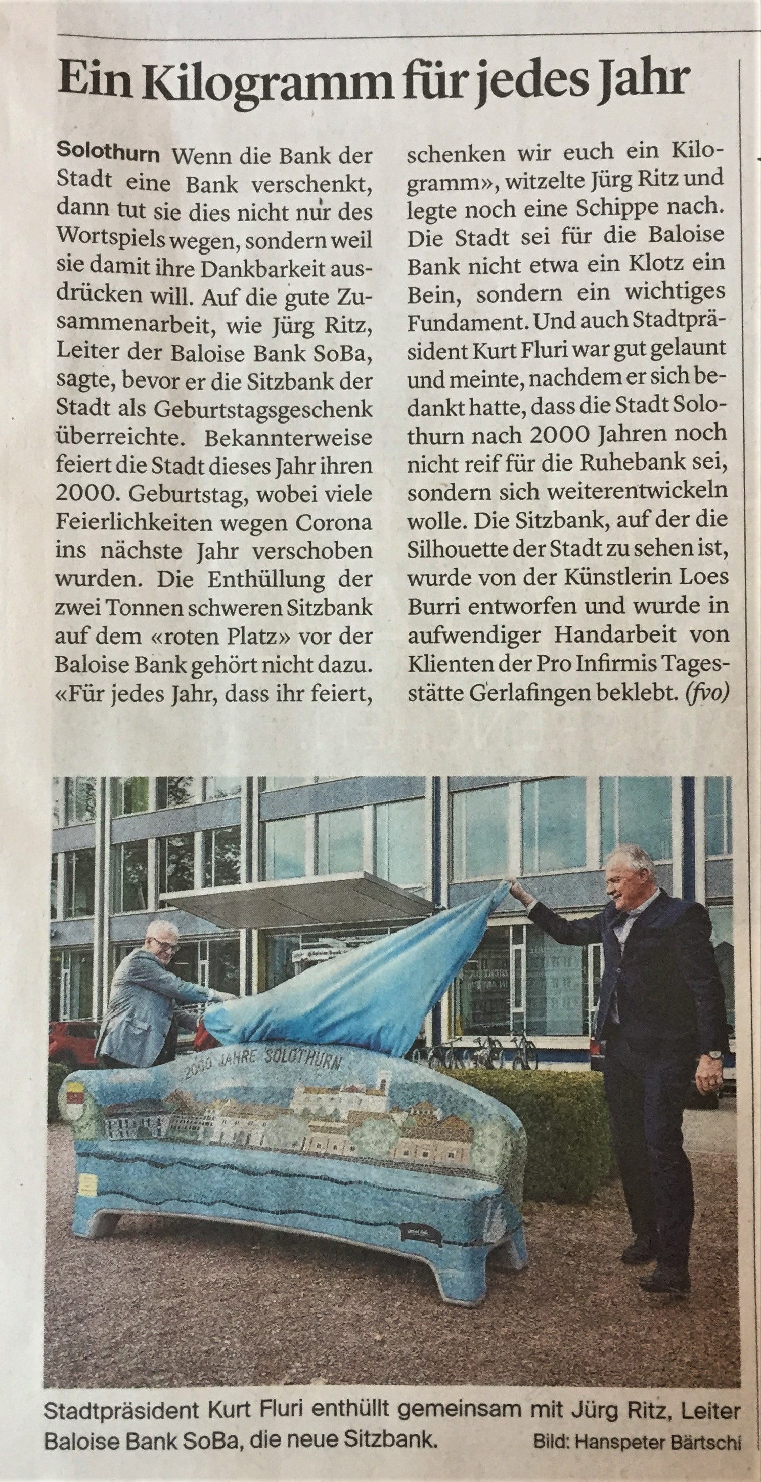"Ein Kilogramm für jedes Jahhr" Socialsofa Solothurn, Solothurner Zeitung 21.10.2020